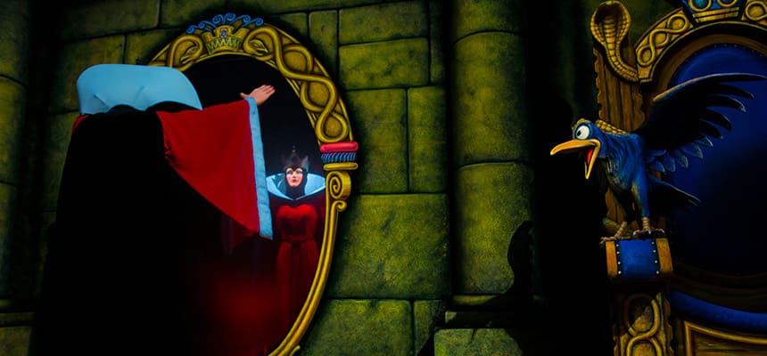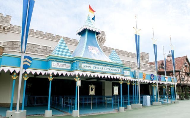 ⑨アトラクションの外観はほとんどのパークで同じような作りになっているが、マジック・キングダムのみ他のパークと外観が異なっており、ファンタジーランドの風景に溶け込んだ造りとなっている為、とても小ぢんまりとした作りになっている。