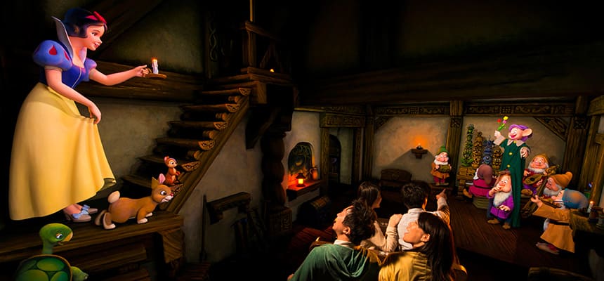 ③東京ディズニーランドは他のパークとは内装が若干異なるが、内容は同一であり、音声のみ日本語吹き替えにしている。