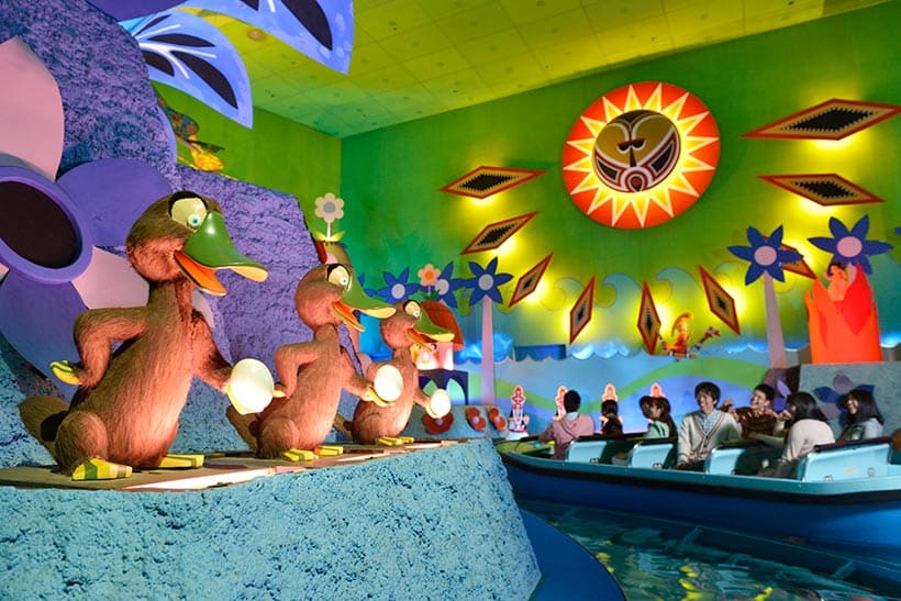 カナルボート型のライドに乗って世界各国の子どもをイメージした人形たちが歌って踊る夢の世界を訪れる