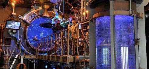 ⑦ライドに乗る前に、建物中央にある「ミッションコントロールルーム」という部屋でプレショーが行われる。