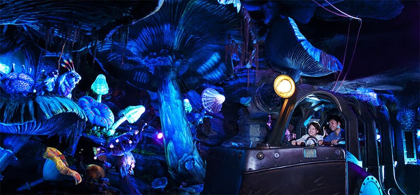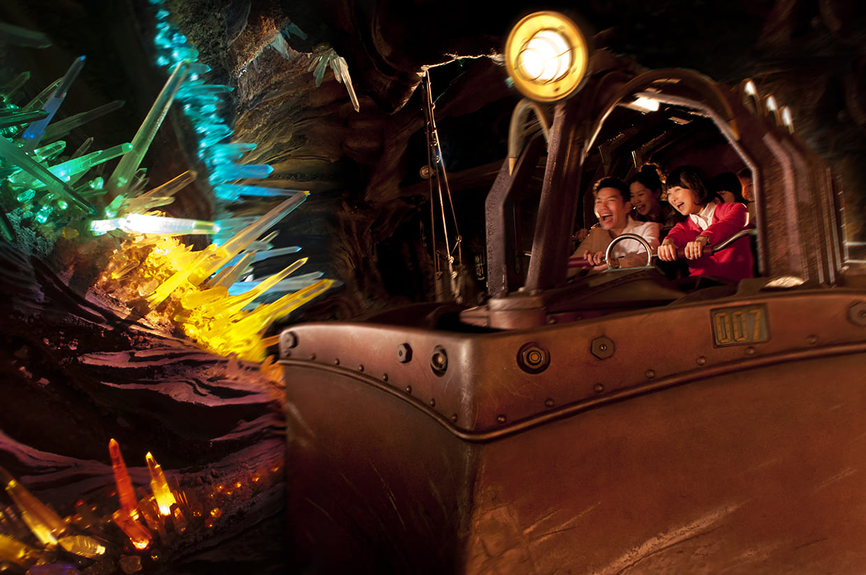 地底走行車に乗って神秘に満ちた地底の世界を探検するジェットコースター