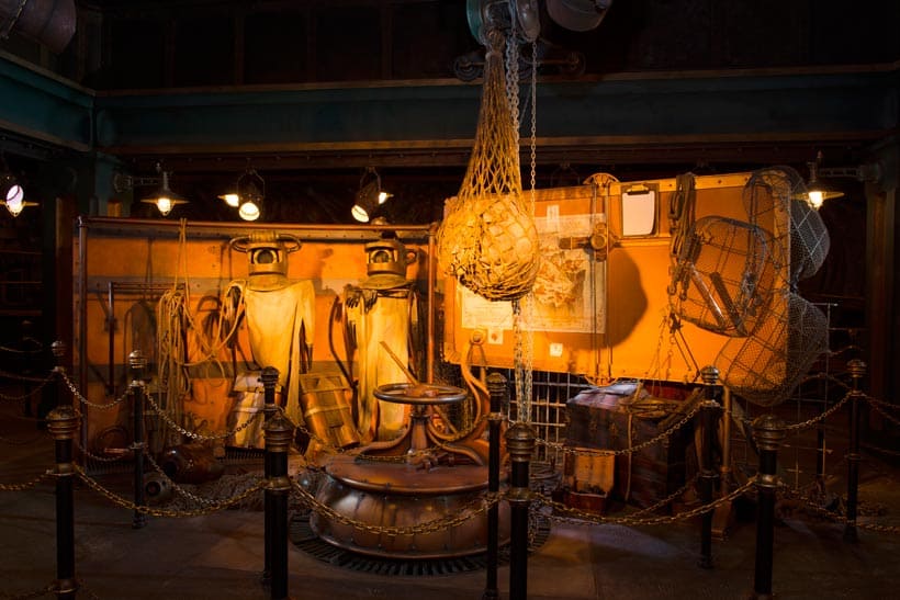 ⑦待ち列では、映画『海底二万哩』に登場する小道具や、貴重なネモ船長の肖像画を見ることが出来る。
