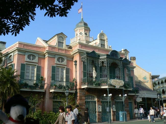 ④アトラクションの周辺はルイジアナ州ニューオーリンズの町並みが再現されており、ディズニーランド(アナハイム)の「ニューオーリンズ・スクエア」を一部取り込んだものである。