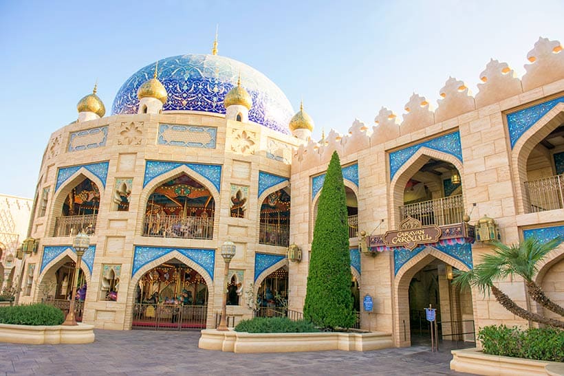③エキゾティックな宮殿の中庭に建つ、華やかな建物「キャラバンカルーセル」は、世界文学の名作『アラビアンナイト』がモチーフになっている。