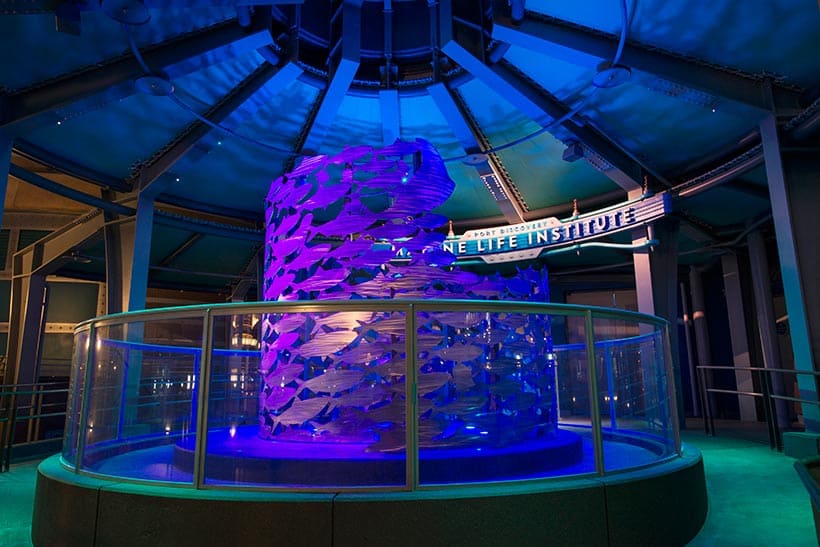 ⑧アトラクション入口の魚のモニュメントに隠れミッキーがいる。