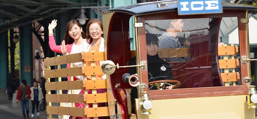 ①ライドは20世紀初頭当時の自動車の形をしたものが多い。