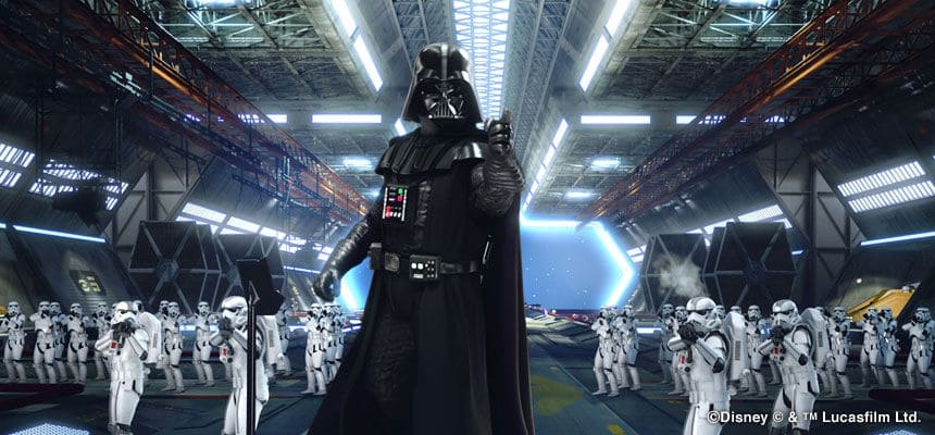 映画『スター・ウォーズ』を題材とした3D映像によるフライトシミュレータ