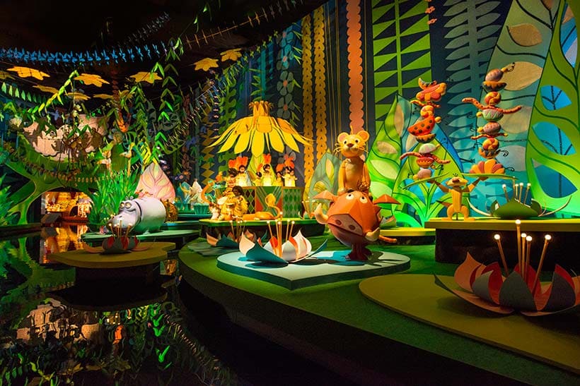 カナルボート型のライドに乗って世界各国の子どもをイメージした人形たちが歌って踊る夢の世界を訪れる