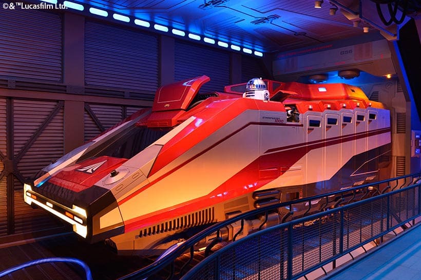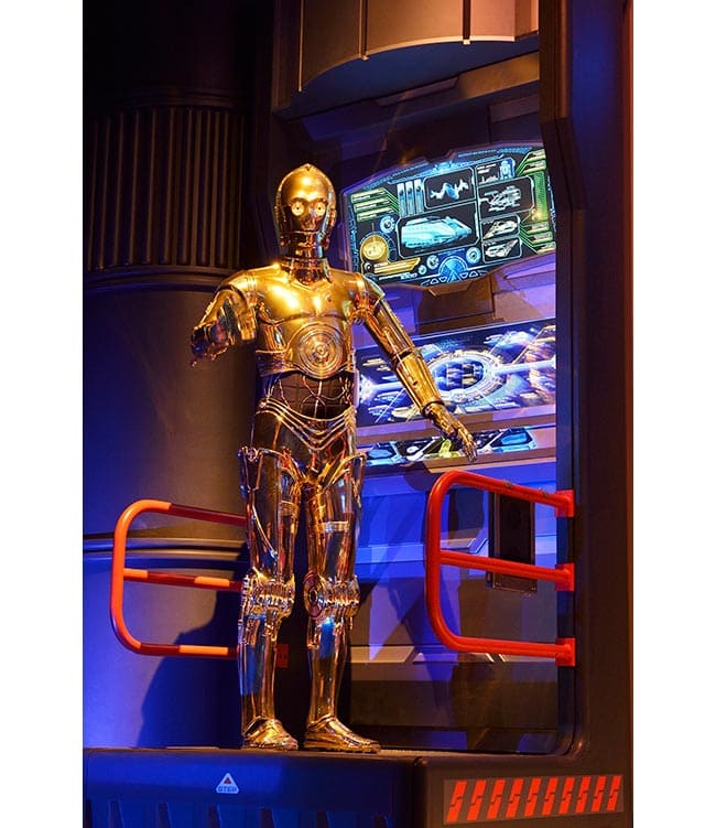 ⑩乗り場に向かう途中、多くのドロイドが置かれている中の一番奥にある壊れかけた一体のドロイドは、2013年5月にリニューアルする前のスター・ツアーズでナビゲーターを務めたキャプテンレックスである。