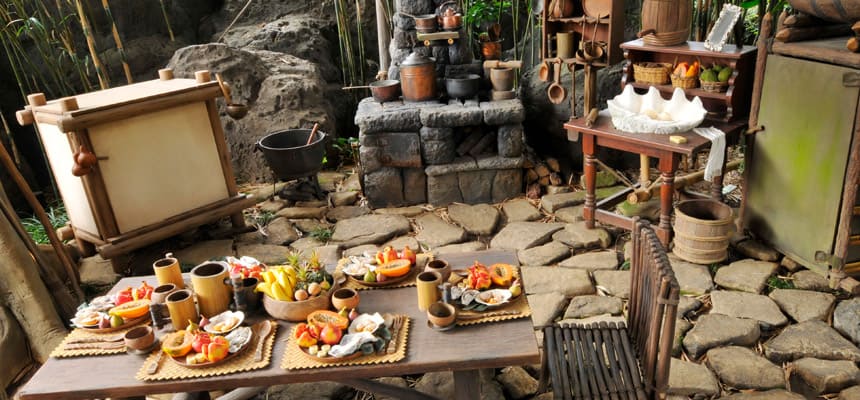⑩キャストによる解説のタイミングは庭から聞こえる音で判断しており、鳥の鳴き声の時はチキの神様の説明、 スティッチ の笑い声が聞こえると、チキルームへの案内をする。