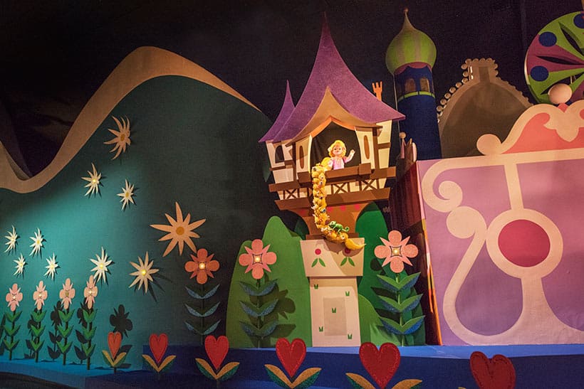⑤新しく加わった人形の付近では、それぞれの映画を彷彿とさせる音楽が「小さな世界」の曲に織り込まれている。
