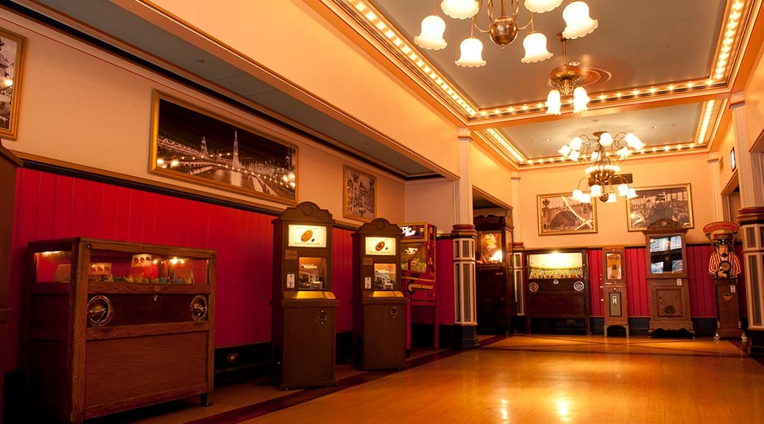 美しいイルミネーションに誘われて建物に入ると、そこはノスタルジックなゲーム機がずらり。