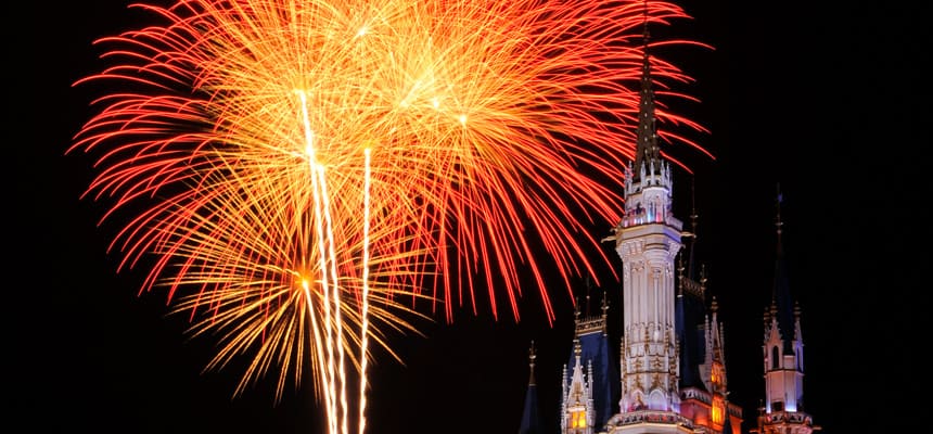 』など、おなじみのディズニー映画の楽曲のメドレーにのせて花火が打ち上がり、東京ディズニーランドの夜空を美しく彩ります。