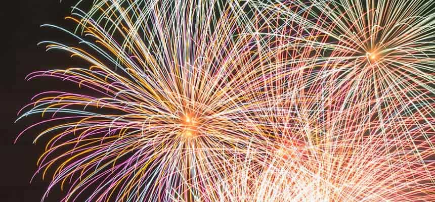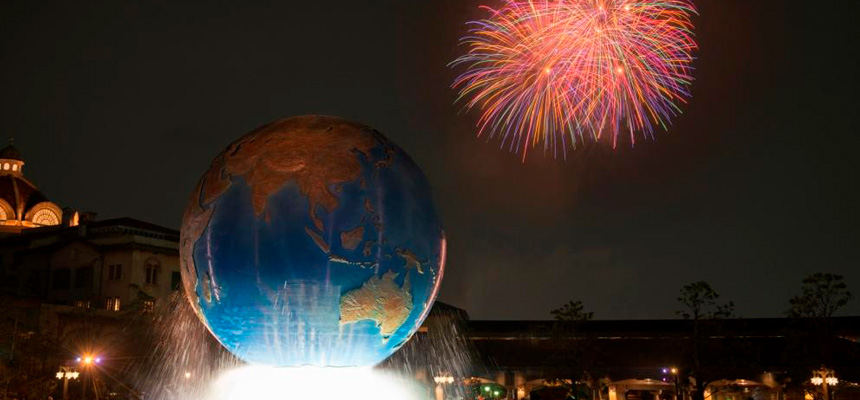40周年のテーマソングやさまざまなディズニーソングにのせて、色とりどりの花火が夜空に咲き誇る。