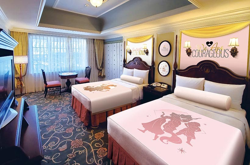 ディズニープリンセスが持つ”勇気と優しさ”がテーマの「ディズニー・アルティメット・プリンセス・セレブレーション」と連動した、華やかな客室。
