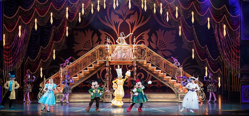 2019年にメディテレーニアンハーバーで公演した「フェスティバル・オブ・ミスティーク」のコスチュームに身を包んだ ミッキーマウス やディズニーの仲間たちが登場し、ゲストへあいさつ。