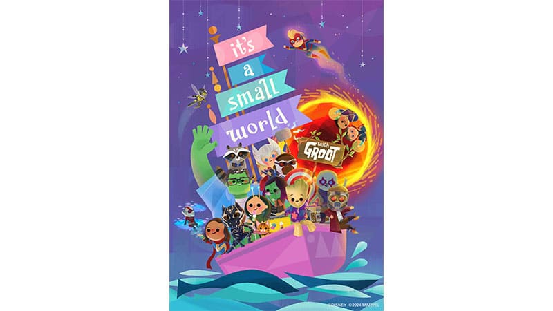「 イッツ・ア・スモールワールド 」の愛らしいスタイルでデザインされたマーベル・スタジオのキャラクターたちが登場する「 イッツ・ア・スモールワールド withグルート」を期間限定で開催!