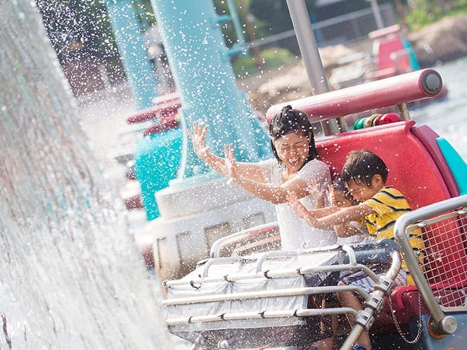 夏の期間では、滝つぼに飛び込んだ時の爽快感をより楽しめるように、期間限定で水がかかる仕掛けを追加し、スリルと涼しさを同時に楽しめる。
