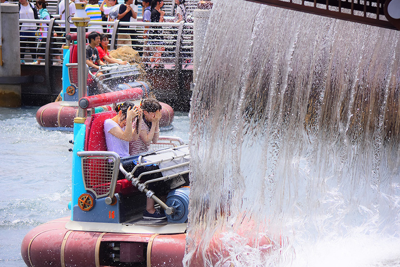 どこに進むかわからないワクワクに加えて、いつどこでびしょ濡れになるかわからないドキドキを味わうことができる、夏限定の アクアトピア