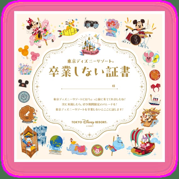 東京ディズニーリゾートは卒業しないでください!という想いを込めて、「東京ディズニーリゾート 卒業しない証書」を用意。