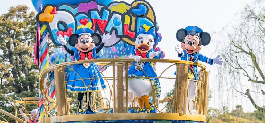 ディズニーの仲間たちが、ドナルドのファンである”クワッキーダック”や、ゲストと一緒にドナルドを褒め称え、お祭り騒ぎで楽しむパレード。