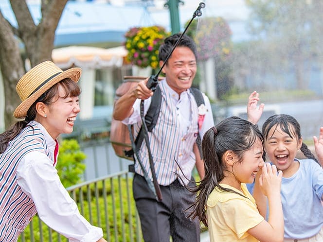 涼みたいゲストにキャストがクールミストをかけて周る。