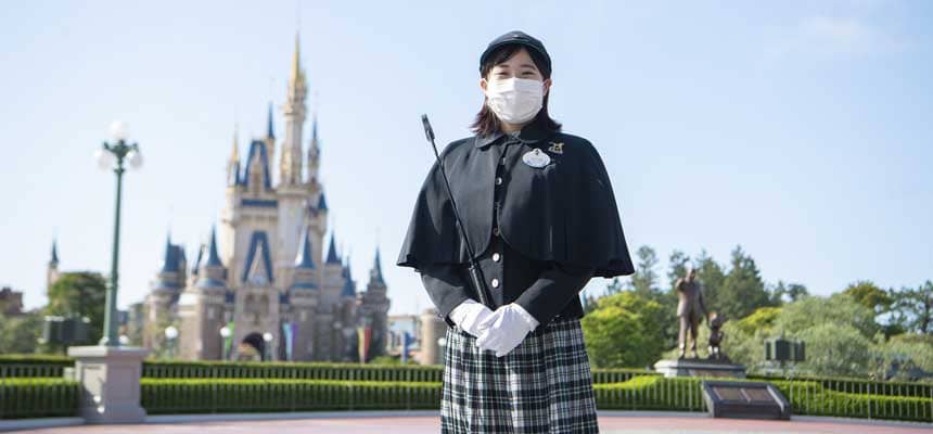 本物のキャストのように、カストーディアルキャストのコスチュームに着替えて、スイーピング(掃き掃除)などの仕事が体験できるプログラムを東京ディズニーランドで開催。