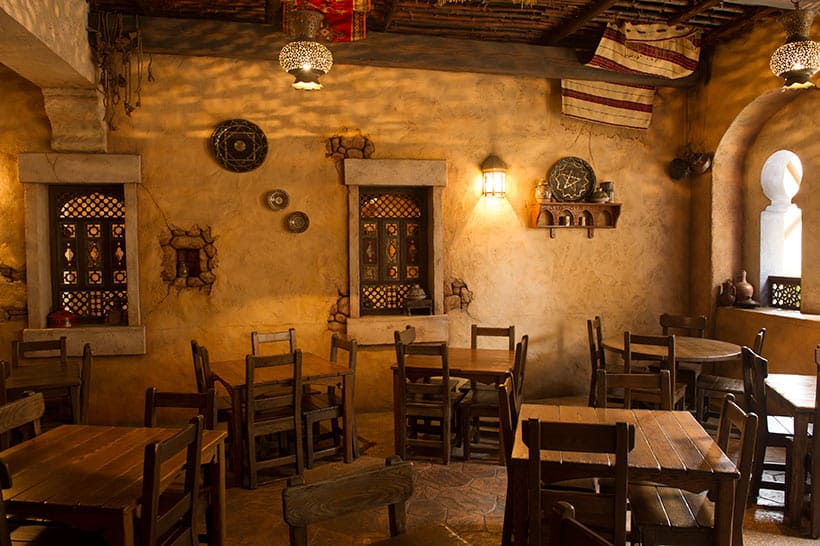 ⑧2つのダイニングエリアをつないでいるのが、4つのフードカウンターのある場所で、ここはアラビアの市場にある屋台がモチーフ。