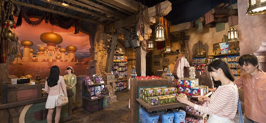 ②映画『 アラジン 』に登場する アラジン ジャスミン ジーニー ジャファー など、アラビアンコーストにちなんだお菓子や キャンディー を扱う。