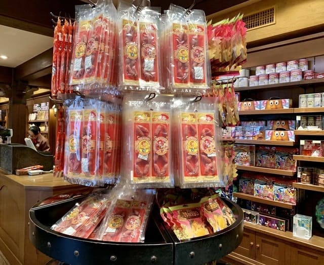 ④東京ディズニーランドで売られているお菓子全般の他に、ビーフジャーキーやサラミソーセージなど、東京ディズニーランドオリジナルのものもあれが、輸入品もある。