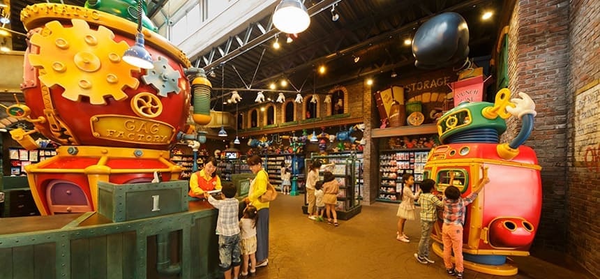 ①コンセプトは、トゥーンタウンの住人たちが使う、クレージーなギャグを製造・販売しているお店。