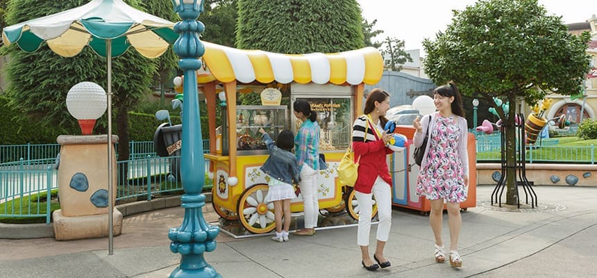 ②トゥーンタウンにある唯一のゴルフコース「トゥーンタウン・ティーズ」(※実際はゴルフコースという名の花壇)があり、ヘタなゴルファーを見越して、OBエリアにアイスクリームワゴンを作ったというコンセプトからくる店名の由来。