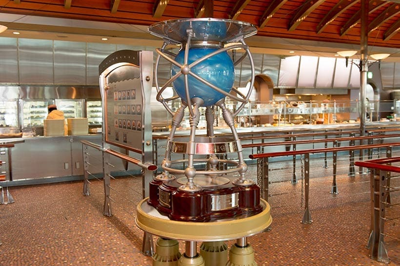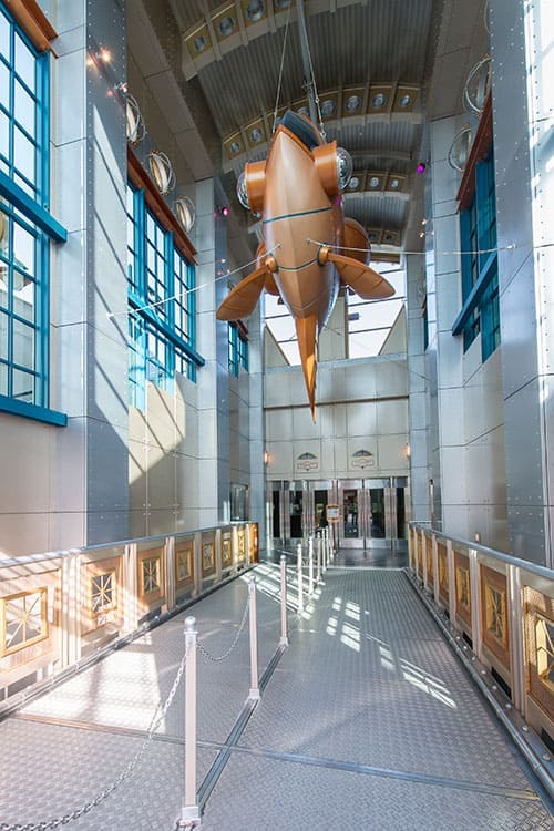 ④レストラン入口に吊り下げられている、マンボウの形をした潜水艇は「サンフィッシュ・サブ」という、昨年の海底グランプリで優勝した潜水艇というストーリーがある。