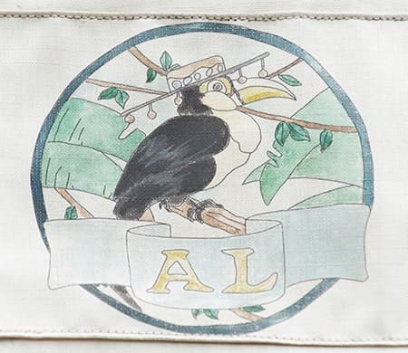 ⑧店内には物資が入りにくいジャングルならではの工夫がされており、商品を並べる棚には、船の寝台の下に入るようなスチーマートランクが、ふたを外して使われている。