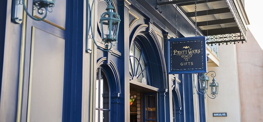 ⑪お店の看板には「World Bazaar Confectionery - Sweets with Character」(ワールドバザール・コンフェクショナリー ~ディズニーキャラクターとともに素敵なお菓子を~)という文字が描かれている。