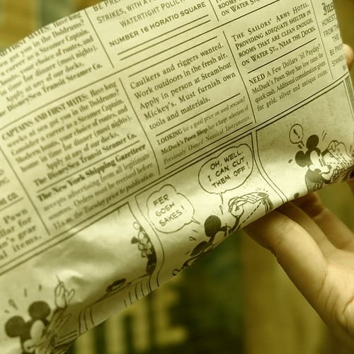 ④包み紙はニュースペーパーをモチーフにしており、その中には