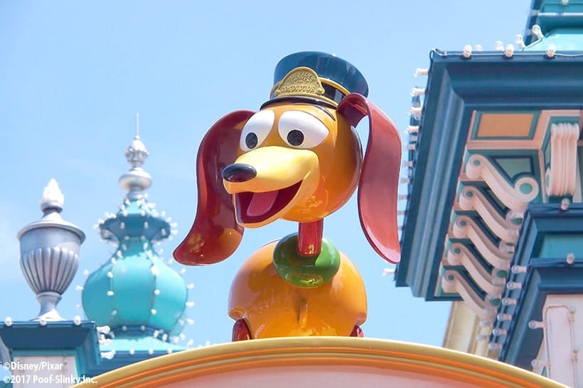 ②店内は鉄道、船、航空輸送の3つのセクションに分かれおり、それぞれのセクションにディズニーキャラクターの大きなブリキのおもちゃが飾られている。