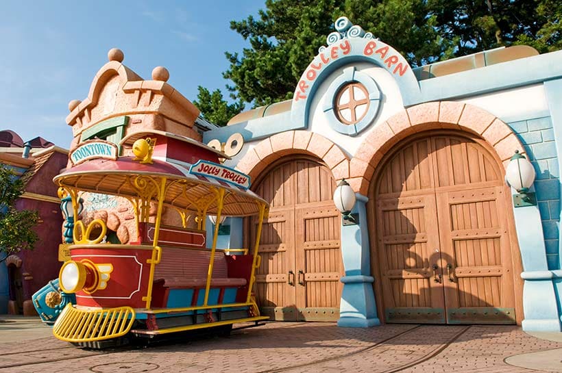 ③車体の側面には東京ディズニーランドのアトラクションのポスターが描かれている。