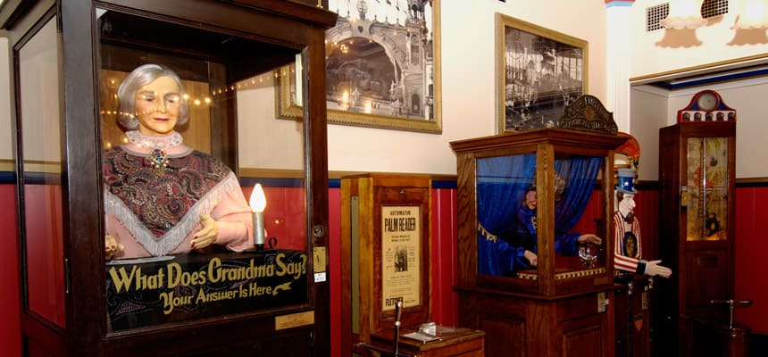 美しいイルミネーションに誘われて建物に入ると、そこはノスタルジックなゲーム機がずらり。