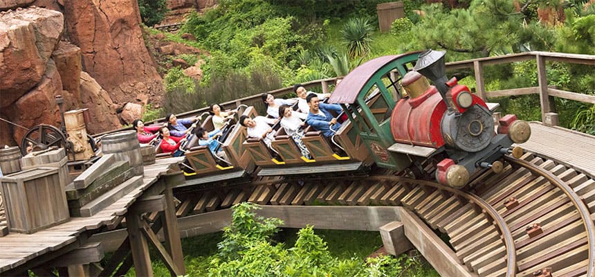 ①本来は、ディズニーランド(アナハイム)のようにパークを一周し、途中に駅を数ヶ所設置して移動手段として使えるアトラクションにする予定だった。