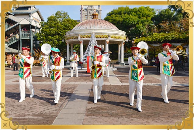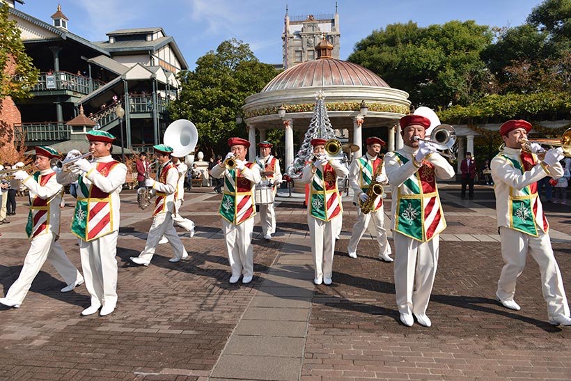 東京ディズニーシー・マリタイムバンドが、おなじみのクリスマスソングなどを演奏して、気分を盛り上げる。