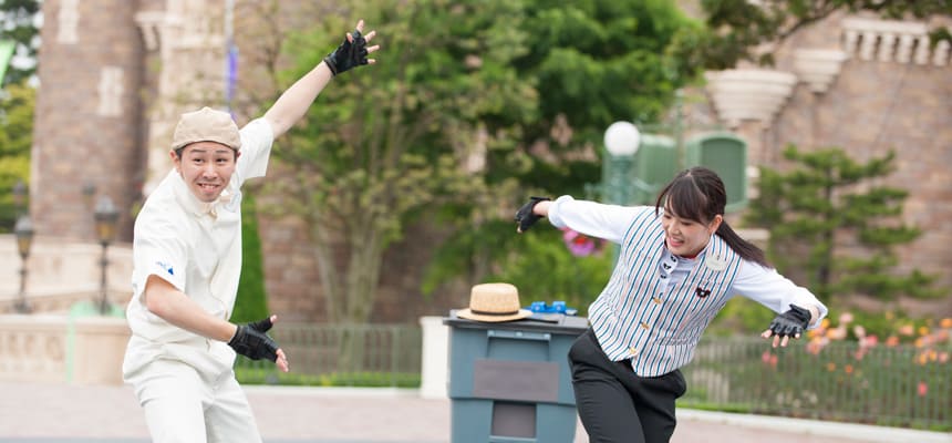 カストーディアルキャストとゲストコントロールキャストが、パレードルートなどで、アクロバティックなダンスを繰り広げる。