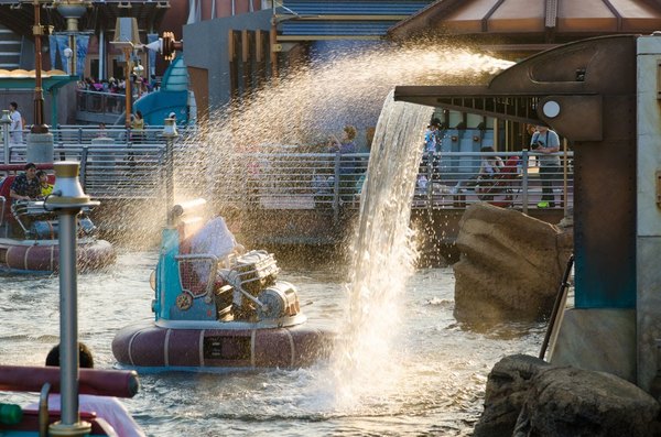 通常期では、噴水などの水は乗車するゲストにはかからないように設定されている。