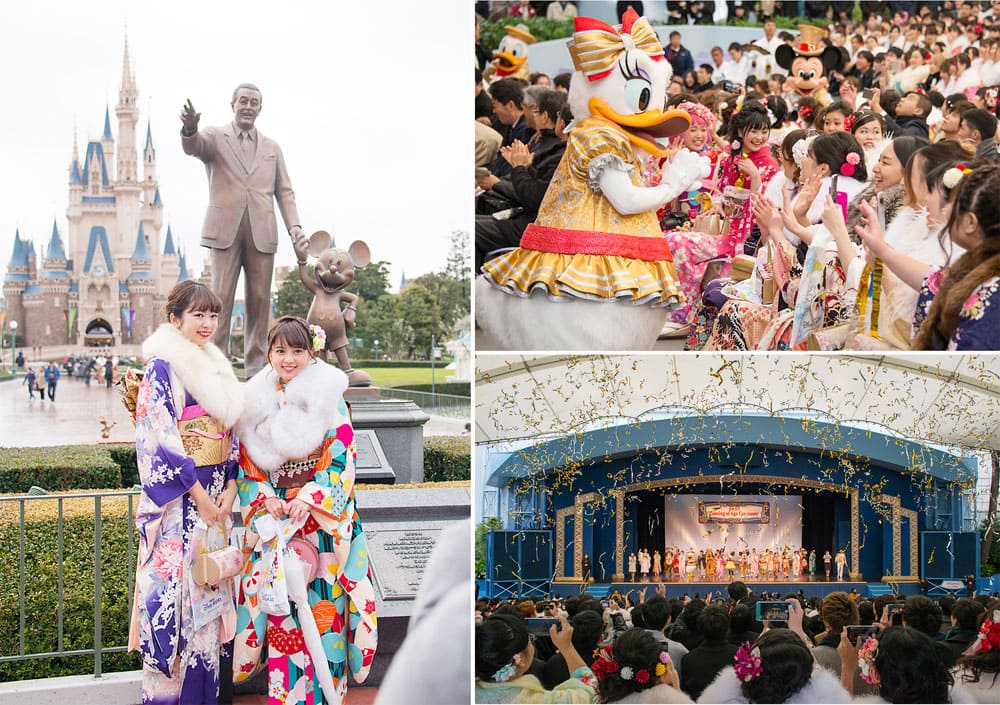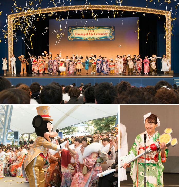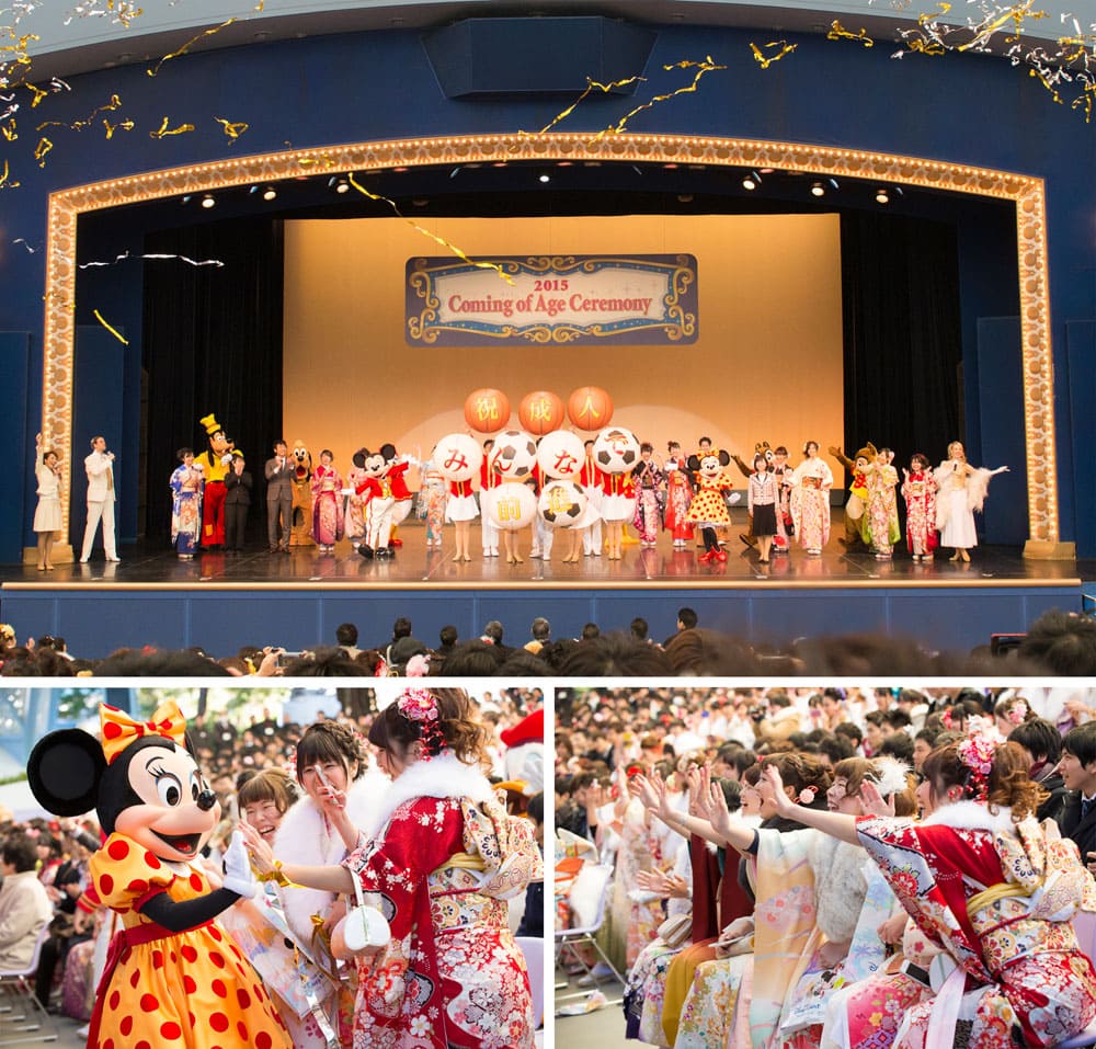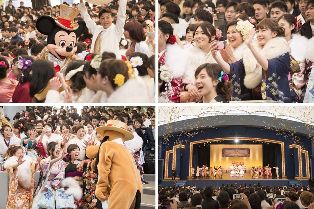 フィナーレでは、ディズニーの仲間たちによる華やかなダンスナンバーが繰り広げられ、鮮やかな金銀のテープが天井から舞い降り、新成人の門出を祝福。