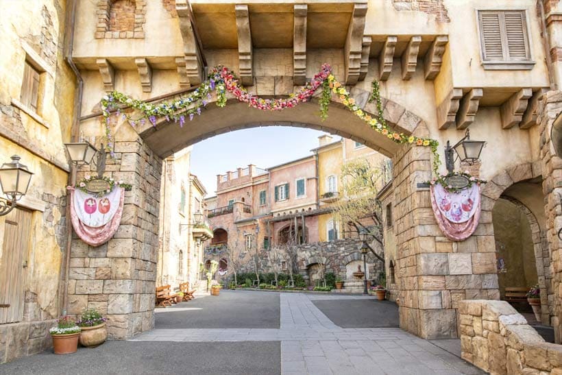 東京ディズニーシーのエントランス周辺やメディテレーニアンハーバーには、「ファンタジースプリングス」オープンへの期待や想像が膨らむようなデコレーションが施される。