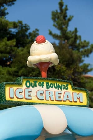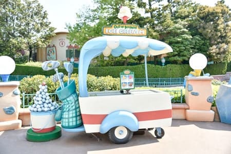 ②トゥーンタウンにある唯一のゴルフコース「トゥーンタウン・ティーズ」(※実際はゴルフコースという名の花壇)があり、ヘタなゴルファーを見越して、OBエリアにアイスクリームワゴンを作ったというコンセプトからくる店名の由来。