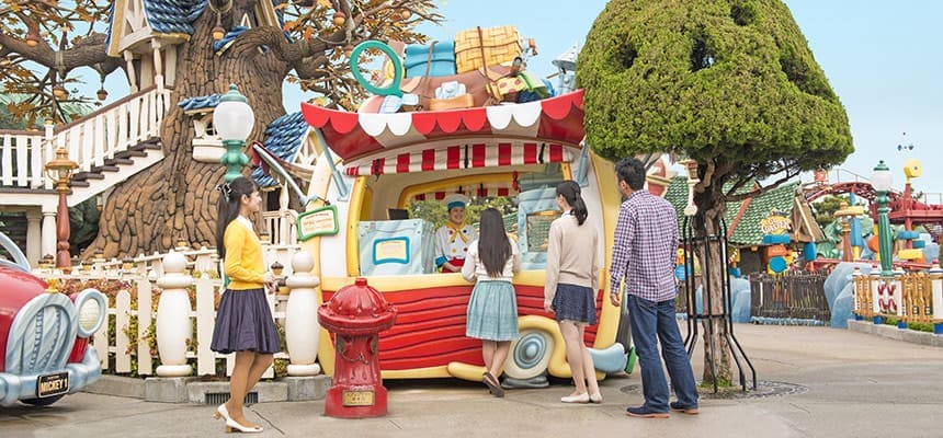 ③トゥーンタウンにあるゴルフ場の近くにあるので、ワゴンの横にはゴルフクラブやゴルフボールがディスプレイされている。
