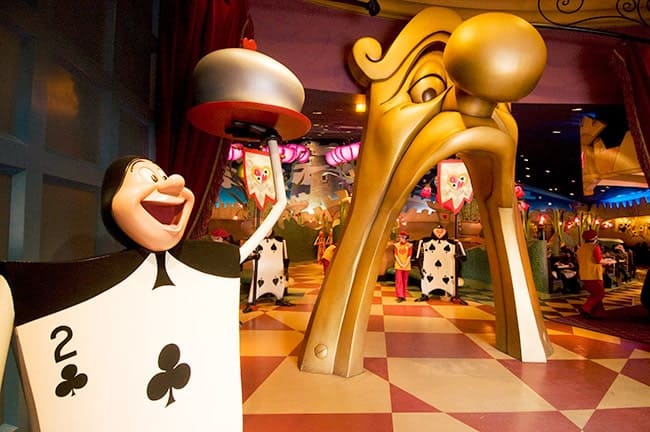 ③ふしぎの国の料理やユニークなデザートなどバラエティ豊かなメニュー。