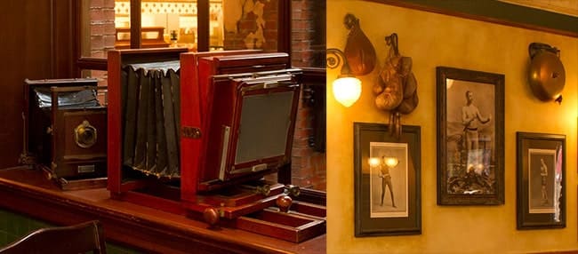 ⑦スポーツバーだった場所には、ボクシンググローブやゴングが飾られており、壁にはスポーツイベントやスポーツ選手の写真が掛けられている。
