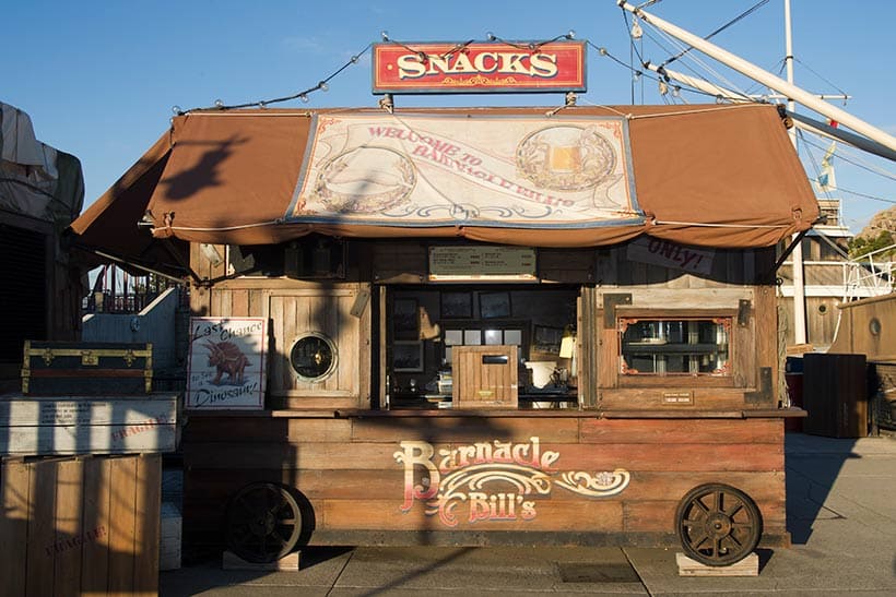 ⑦『東京ディズニーシー5thアニバーサリー』開催期間中、バーナクル・ビルズは休業し、同じ場所で「ピア33 ~ボートマンズ・テラス~」の営業が行われていた。